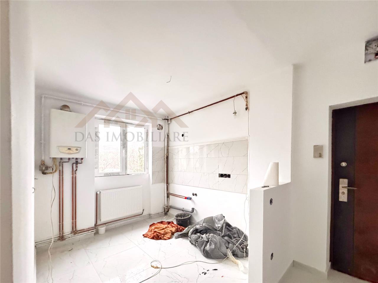 Apartamentul este in curs de renovare, usa noua la intrare, geamuri termopane noi, instalatia electrica si de incalzire , refacute, peretii gletuiti, sapa in camere, gresie si faianta in bucatarie si camera de baie.