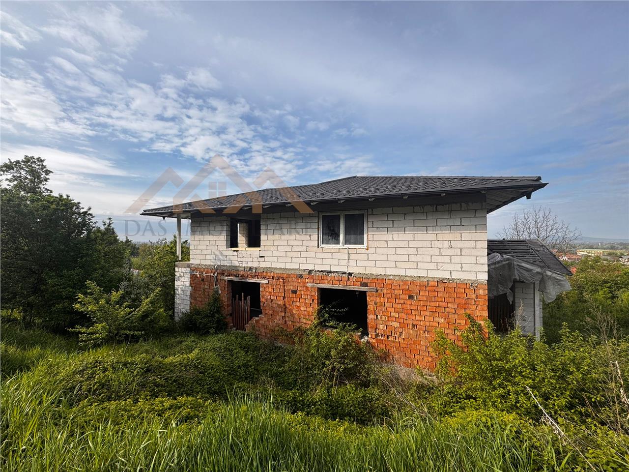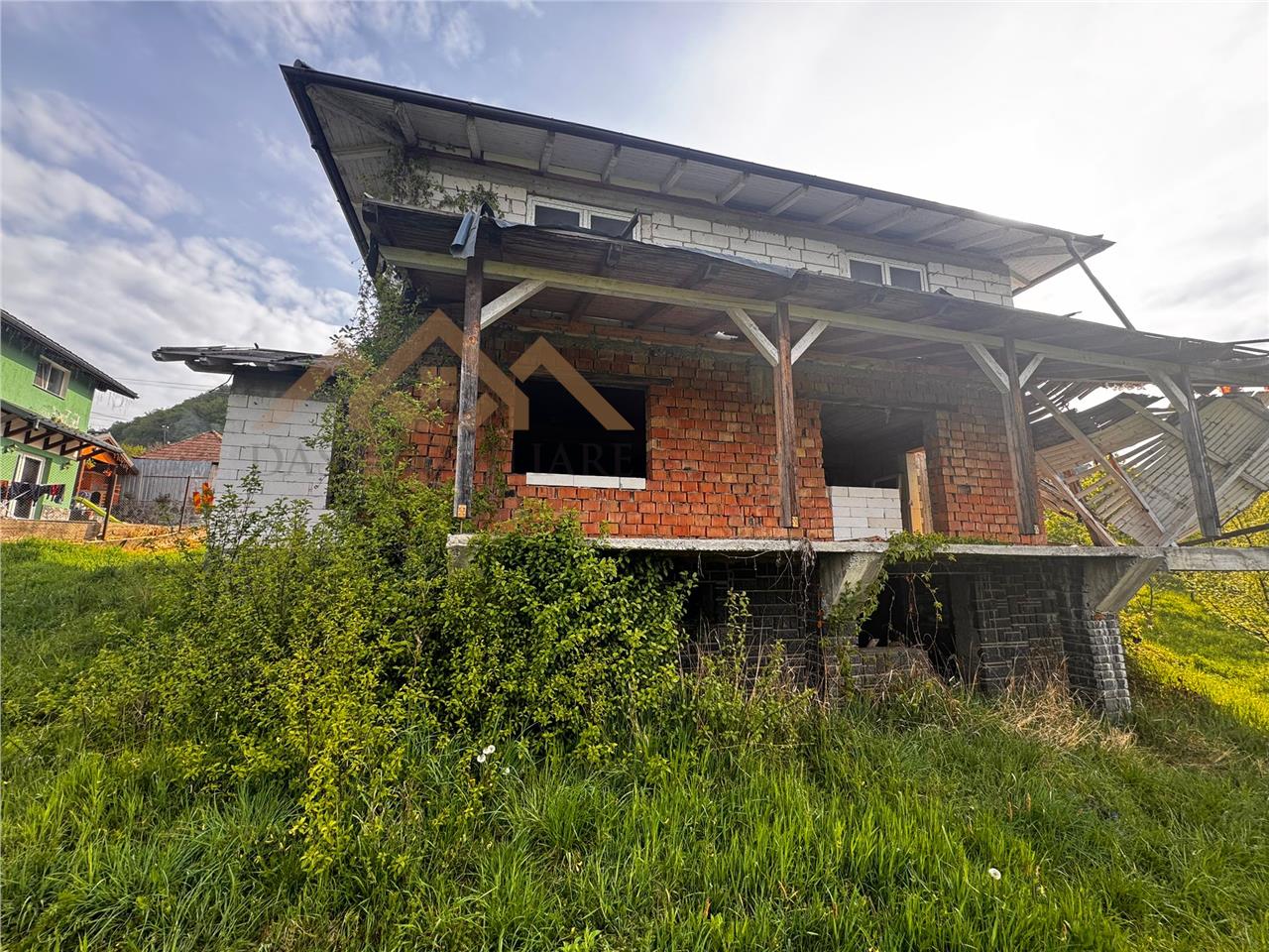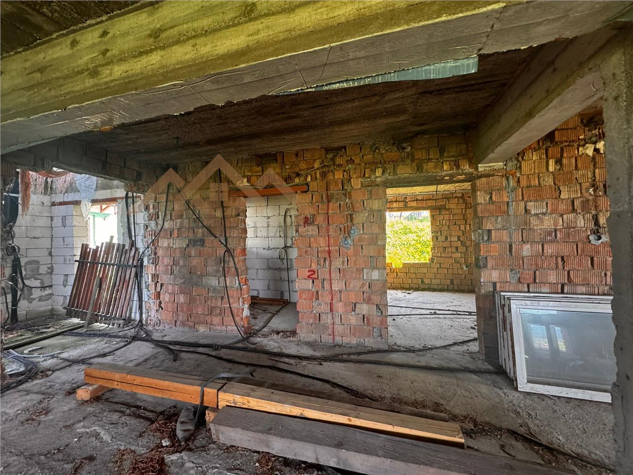 Casa este construita in anul 1995, la parter din caramida iar etajul din BCA, are acoperis din tabla , iar in interior este inceputa lucrarea de instalatie electrica (vezi foto). De curand s-au facut imbunatatiri .