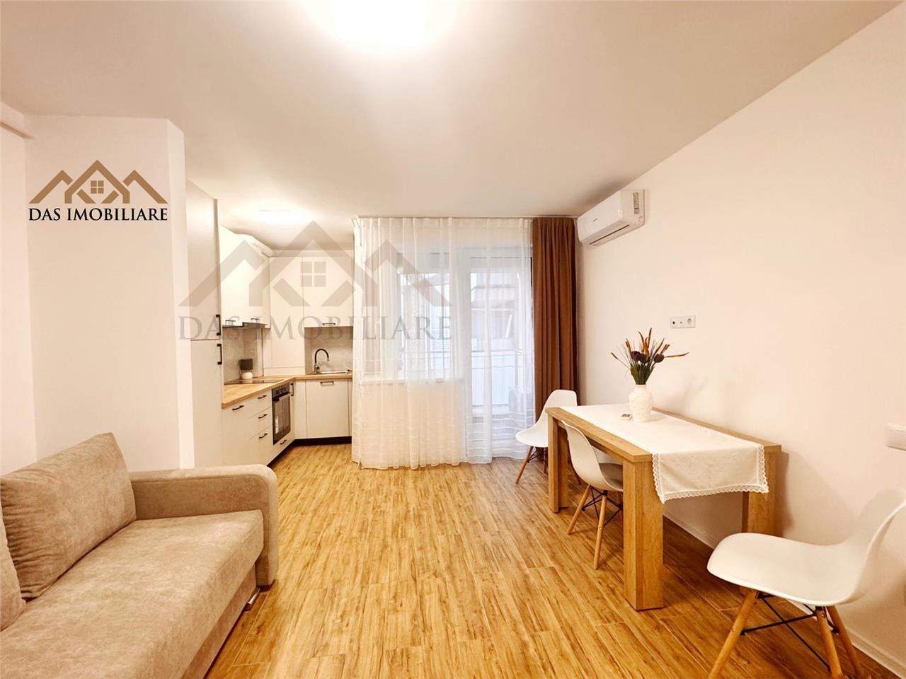 Este pozitionata la parter, cu balcon deschis si se preda mobilata complet si utilata cu : frigider, plita, cuptor, masina de spalat rufe si cuptor cu microunde.
