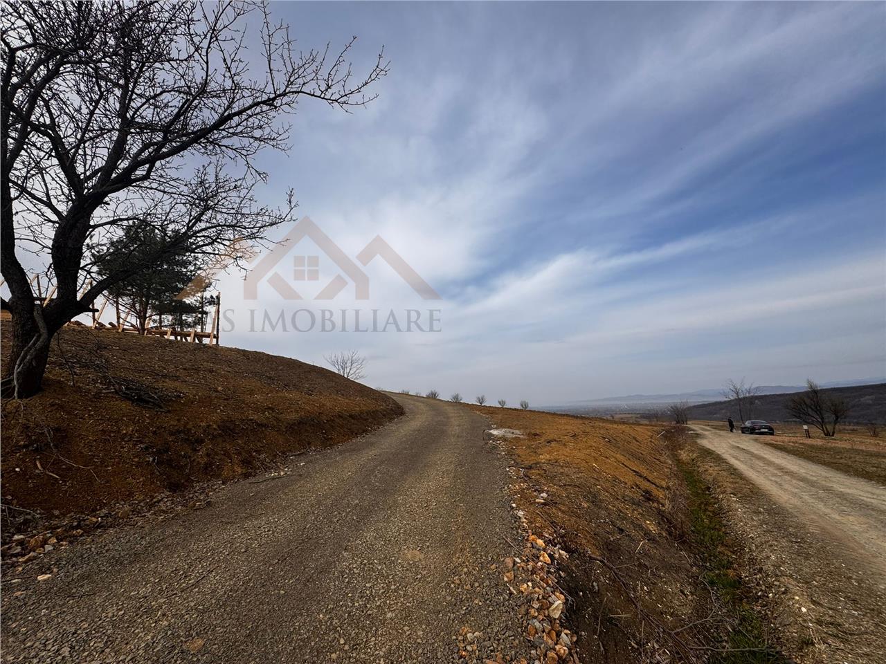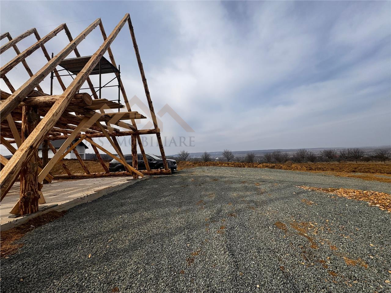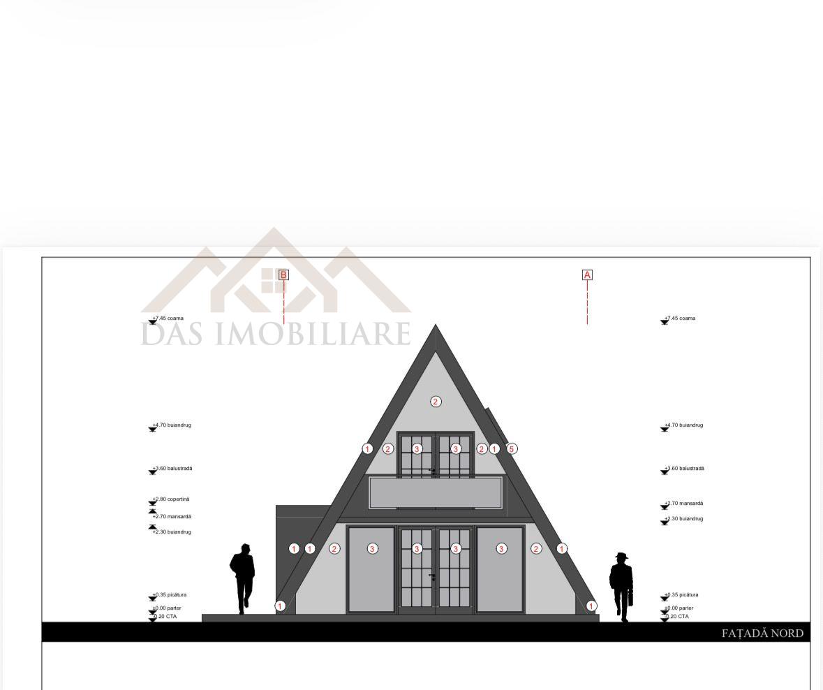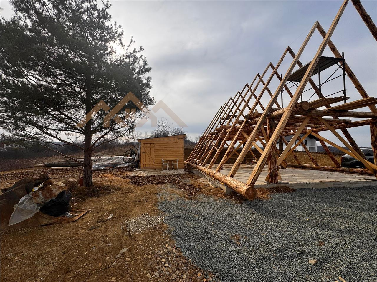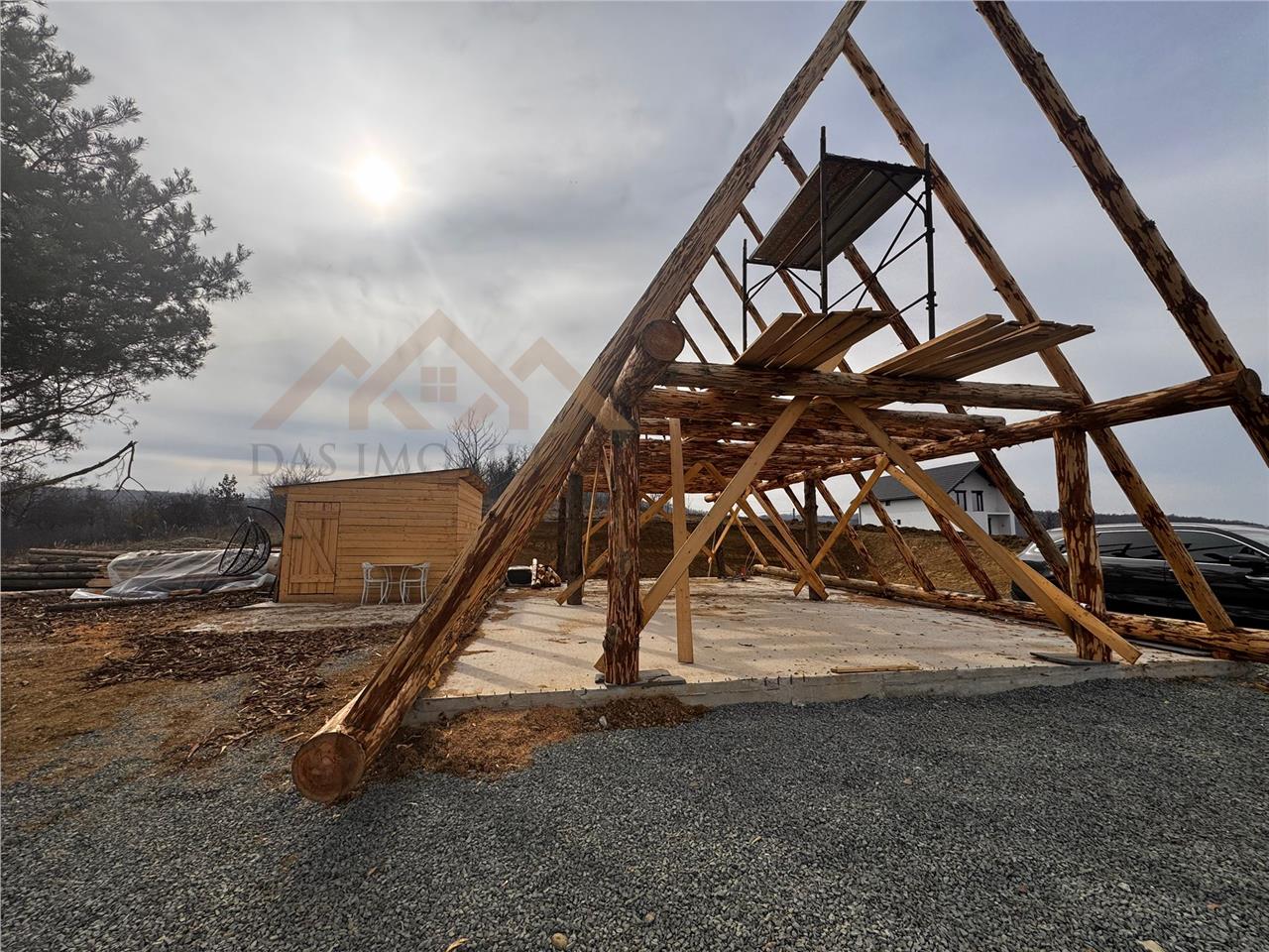 Pe teren este deja o cabana A frame in constructie, din douglas, cu toate autorizatiile, curent trifazic, gaz la limita proprietatii, apa langa cabana , fosa septica.